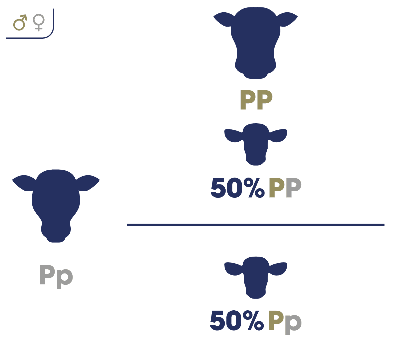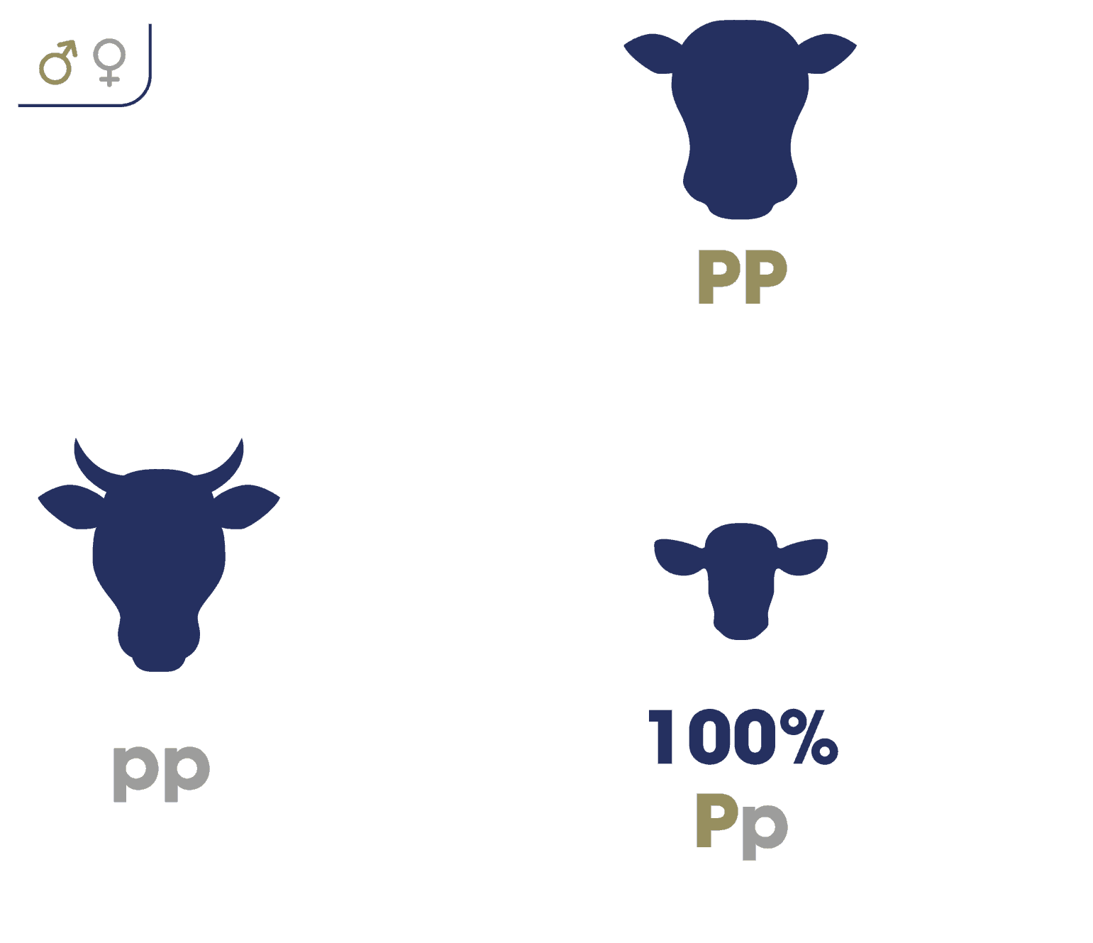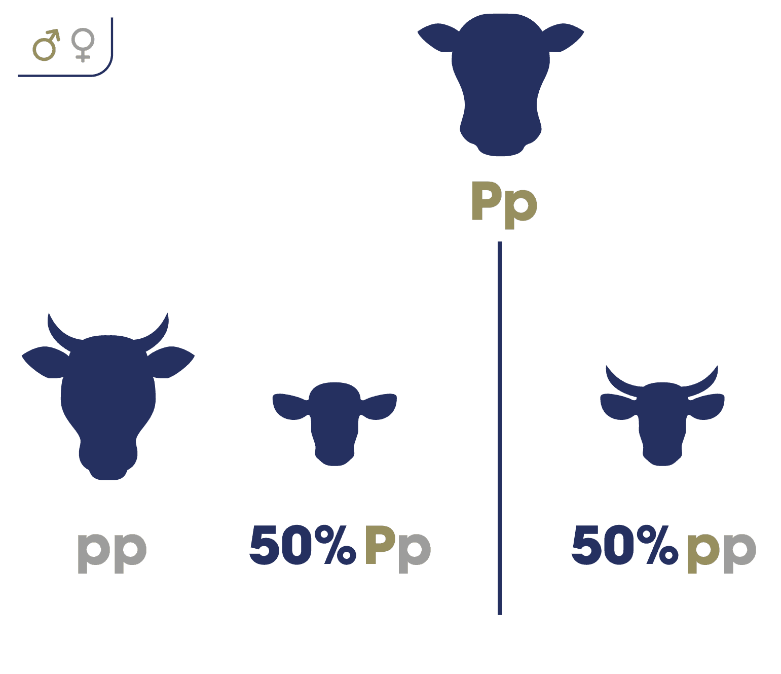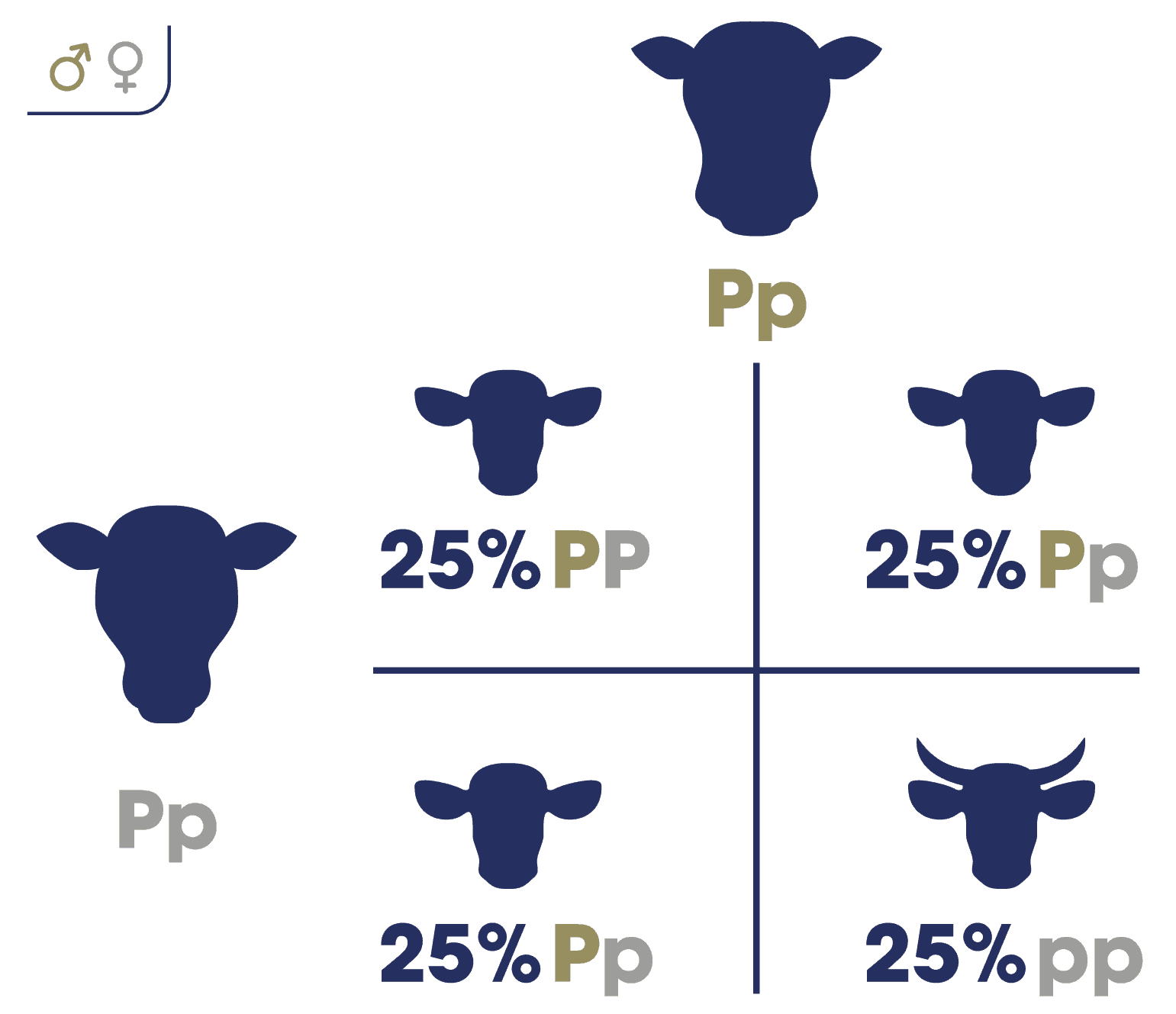 Par convention, un animal sans cornes homozygote est dit : PP, tandis qu’un hétérozygote est : P.